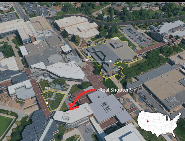 The building marked in the pic could be the likely location for the second (real) shooter. The guy was almost certainly a pro. For Robinson, a 200 yard shot, with a "cold muzzle", added stress, wind conditions, and that specific rifle would be next to impossible to accomplish. Plus there are other things abt the man that just don't add up.