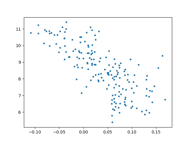 plt.plot(ecigdp.eci,np.log(ecigdp.gdp2014),'.')