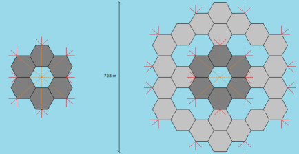 A design of the floating city is chosen in the form of modular hexagonal shaped platforms. The design with the hexagonal shaped platforms is very straightforward and the growth of this floating community is simply achieved by adding more platforms in all ways possible. Hexagonal shaped platforms are symmetric from all sides, so it is easier to configure the floating community in different ways without worrying about whether the platforms are going to fit to each other. Also, the more sides the platform has, the more sides there are to build houses near the water which is a plus for the criterion of water experience. A hexagonal shaped platform with sides of 60 m is the optimal size. The starting floating community consists of 60 platforms each with an area of 9353 m 2 to accommodate 15000 inhabitants in total...