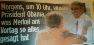 Oh yeaahh.. Mass media in Germany is abuzz with the latest listening scandal. The photo above is from a tabloid newspaper B.Z., they are saying "every morning at 10 am Bama new everything Merkel talked about the day before". A bit sensationalized [or not] but stuff like this is all over the place. US needs to clean up its act it seems to me.