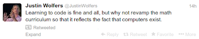 We need both obviously, plain vanilla coding and computational math. Kids are graduating from high school today without having created a simple friggin histogram using a simple one-liner hist(x) where x is one dimensional data. It's a damn shame.