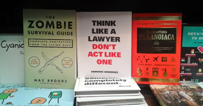 I saw this at a bookstore in Berlin (there are still some left) - the one in the right says "Encyclopedia Paranoica". And.. Zombie Survival Guide? Who reads this stuff?