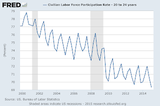 Labor force participation rate for age group 20-24 (shown as quarterly average) says otherwise.