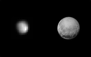 On the left: our best image of Pluto in May. On the right: our current best picture of Pluto.