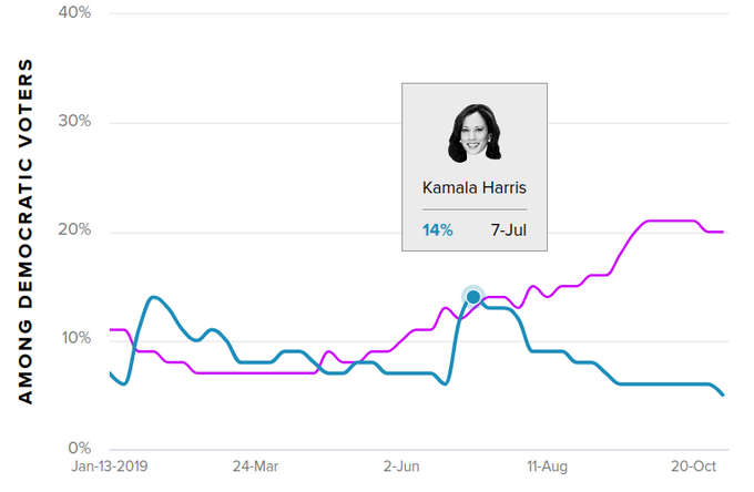 Warren took from Kamala, we talked abt Bernie-Warren correlation before.