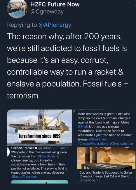 Energy shouldnât come from below. It comes from above [as light and wind]"
