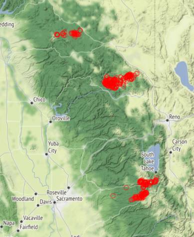Areas near Lake Tahoe and Honey Lake are on FIRE!
