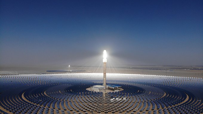 Morocco has the world's largest Concentrated Solar Power (CSP) plant, Ouarzazate Solar Power Station. It covers 3,000 hectares (the size of 3,500 football fields), and can be seen from space. It generates 580MW of electricity, and will power 1 million homes and numerous cities"