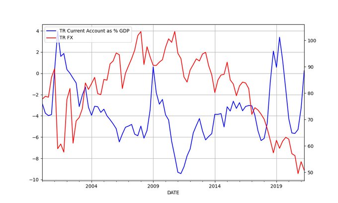 I checked Granger causality, to see the direction of the cause from the data, early time horizon FX effects current account. Later horizon shows account effecting currency. So in a way it's a chicked-and-egg problem, but from Nikolas Müller-Plantenberg research, we know the primary direction is CA->FX. You need to have products to sell so people demand your currency. If you are buying more than you are selling, save other balancing factors, currency will adjust to that.