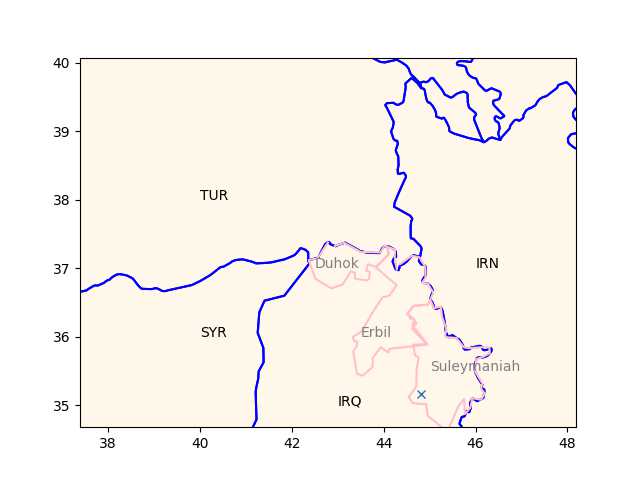 plt.plot(44.82053178,35.1638440,'x')
