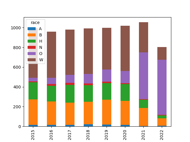2022 police shootings data is now all in. Data file location changed, its content too somewhat.. The increase of 'Other' category for 2021 was higher previously which I'd interpreted as they were simply not recording the race, fudging the numbers.