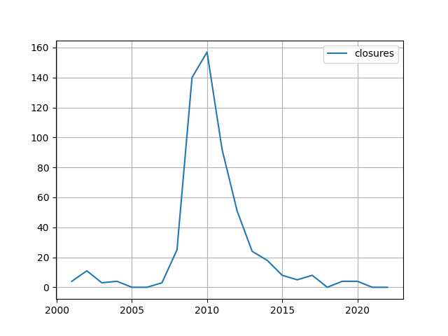 dfg['closures'] = df.groupby('year').size()