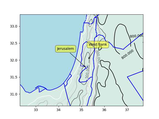 ps = [["West Bank",32.01211, 35.2883120],["Jerusalem",31.7737760, 35.206223]]