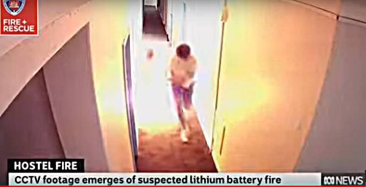News.com.au: "The Moment a Lithium Battery Explodes in a Sydney Hostel.. CCTV footage has captured the incredible moment a lithium-ion e-bike battery exploded, causing a fire to rip through a hostel in Sydney's Kings Cross district"