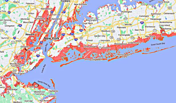 Shared a 7m sea level rise simulation before, that NY area under water now in Brooklyn is in red. If a place can get flooded by extreme water events today, after sea rises it will remain flooded for good. Flooding today is a sign of permanent burial tomorrow. Heed the warning and bolt.