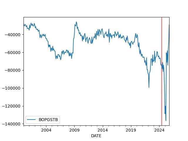 The graph shows US trade deficit is decreasing. Initially there was an increase right after the election (the red line). It's obvious what happened there, after Trump's win importers front loaded their purchases knowing increased tariffs were coming.